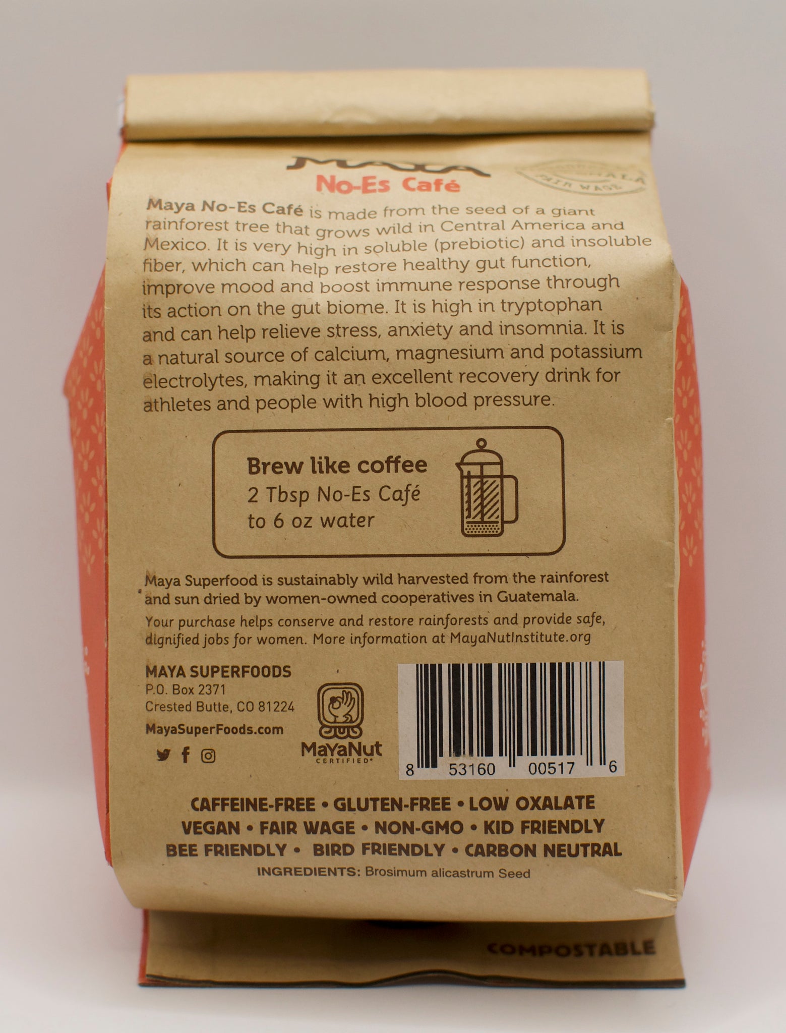 No-Es Café is a courser grind of pure Maya seeds that can be brewed just like coffee. It has a rich coffee-like flavor without any of the caffeine!